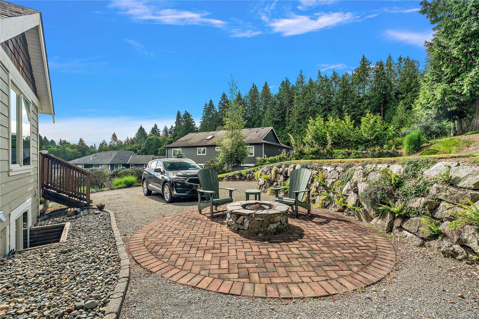 Additional features include a charming outdoor fire pit set on a cobblestone patio, a double car garage, a heat pump for efficient heating and cooling, low-E thermal windows for energy efficiency, and RV parking. This is the best-priced home in Mill Bay and won’t last long—don’t miss your chance to make it yours!