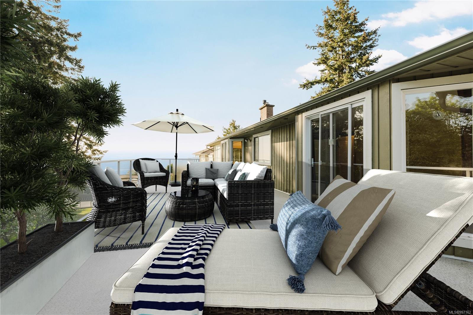 Aloha!! This main level entry home situated in the desirable lagoon area offers outstanding water views and room for the entire family with over 3000 sq ft of finished area featuring 3 bedrooms, 2 baths in the main home plus a one bedroom full height walk out lower level suite. Set behind a well established Japanese garden this home offers a calm & inviting street presence. The main level features no-step entry, two bedrooms, a full bath, and a bright living/dining area with a gas fireplace and fabulous views. Step out onto the expansive back deck (2017) to take in ocean views—an ideal spot to unwind or entertain. Down, you’ll find a large rec room, an additional bedroom, bathroom plus a self-contained 1-bedroom suite with its own laundry—offering flexibility for extended family, guests, or added income. Situated on a generous 10,000+ sq ft lot, the backyard offers plenty of room for kids, pets, or gardening. The property includes a double driveway and carport, is connected to city sewer, and has seen thoughtful updates throughout the years. This is a comfortable, functional home in a peaceful neighborhood, with potential to make it your own. Note photos virtually staged. Living room fireplace propane – buyer to rent/buy propane tank if they wish to use. Lot size & age from BC Assessment.