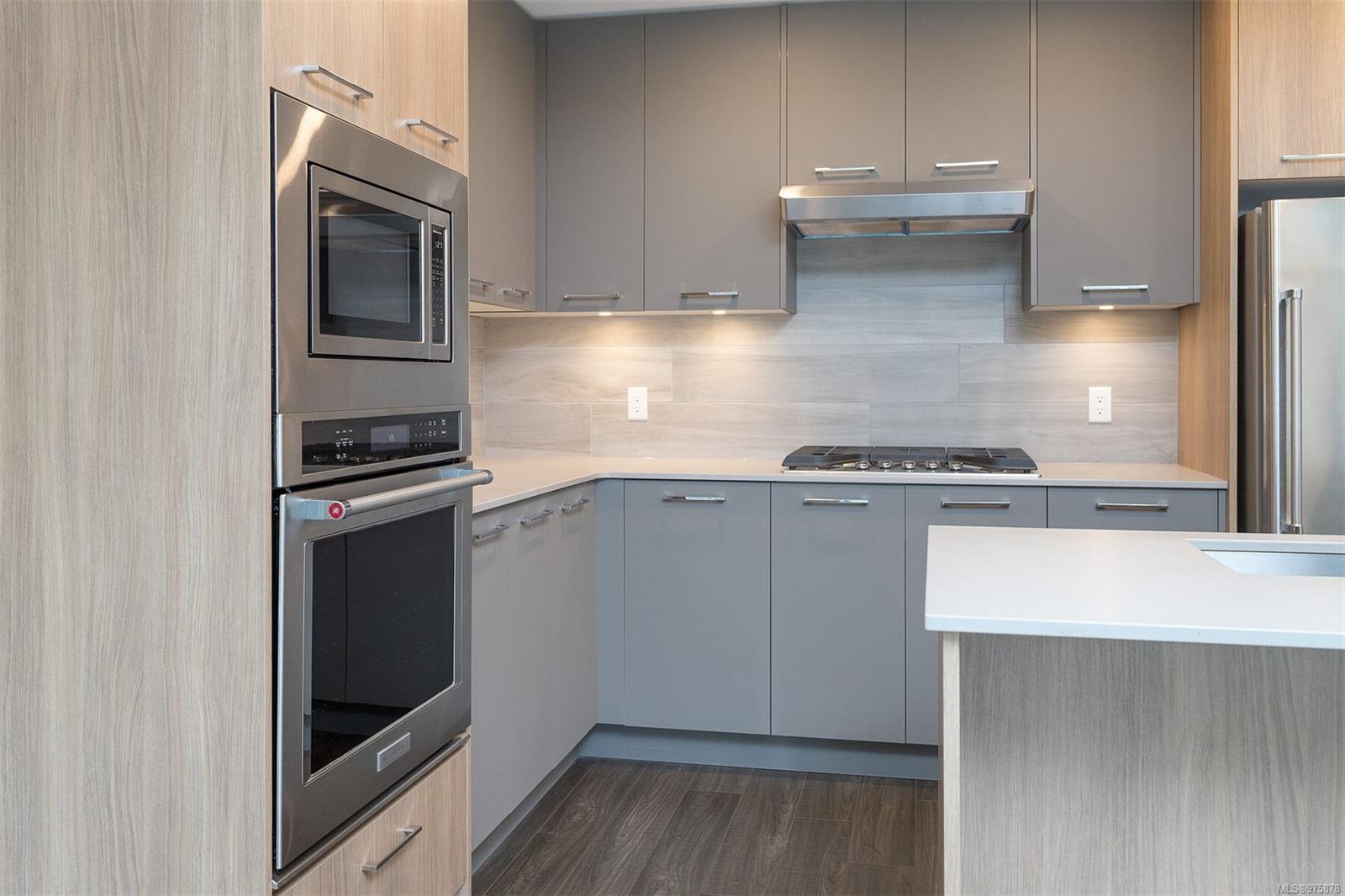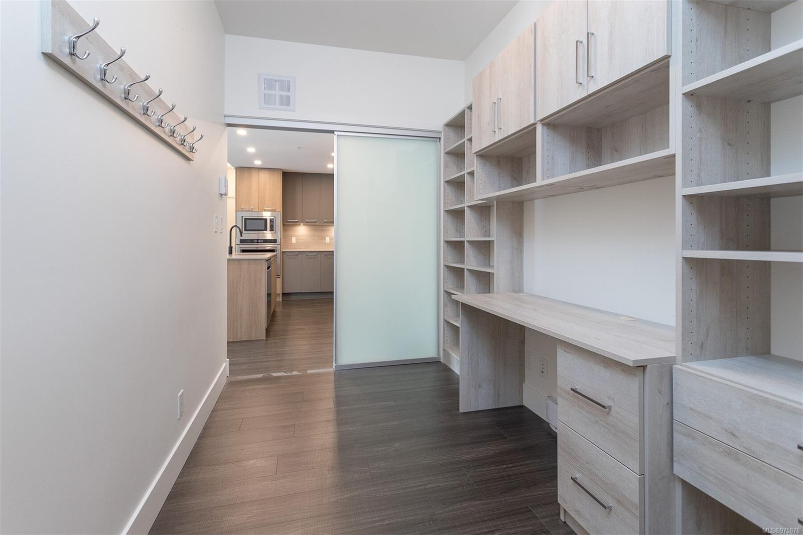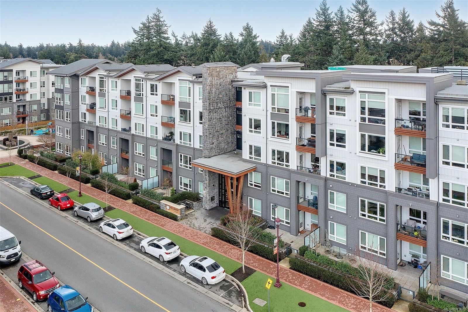 This MUST SEE condo hosts an array of upscale features setting it apart from the rest! Offering a sunny SE exposure & complete privacy with it’s treed outlook over the galloping goose trail this unit offers over $25,000 in owner improvements & will cater to & delight the most discerning buyers.With 2 separated bedrooms & 2 full baths this unit offers an open concept entertainment style center hall plan ideal for entertaining.The adjacent office space is fully outfitted with built in desk/storage solutions, 1000 book library shelving + an adjacent storage room providing even more space. This unit presents as brand new having been lightly lived in by its original owners & comes with sep storage, large private lanai (with phantom screen) & underground parking. The many features of this accessible building include EV chargers, lounge, bicycle storage with maintenance station,kayak room, an electric scooter room,dog wash,etc The list of upgrades to this unit is too long to list (see attached features list) but some of the many features include two luxurious TOTO toilets (washlet, heated seat, etc) well equipped closet organizers, built ins throughout including a full wall of shelving in the laundry,high end appliances etc. The master walk-in closet provides ample storage options,while the kitchen boasts smart drawers in the added pantry, upgraded exhaust fan, natural gas stove top, quartz counters & so many cupboards! The communal lounge and outdoor lounging/picnic area with a gas BBQ and fire pit offer opportunities for socializing and relaxation.The exclusive Belmont Club adds a touch of luxury to everyday living with art & music rooms, ample bathroom facilities, lounge & kitchen facilities etc available for your use 365 days a year. In addition to these premium upgrades, the property’s location cannot be beat. Park your car & walk to every amenity! From ethnic restaurants to pharmacies, doctors’ offices, and retail stores, gym, everything you need is within reach.