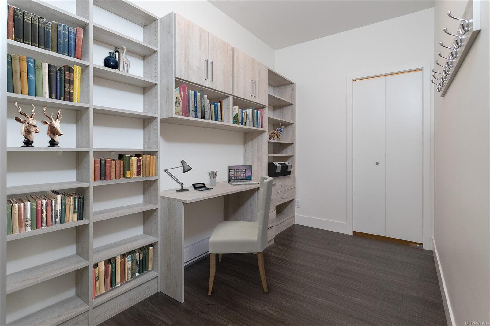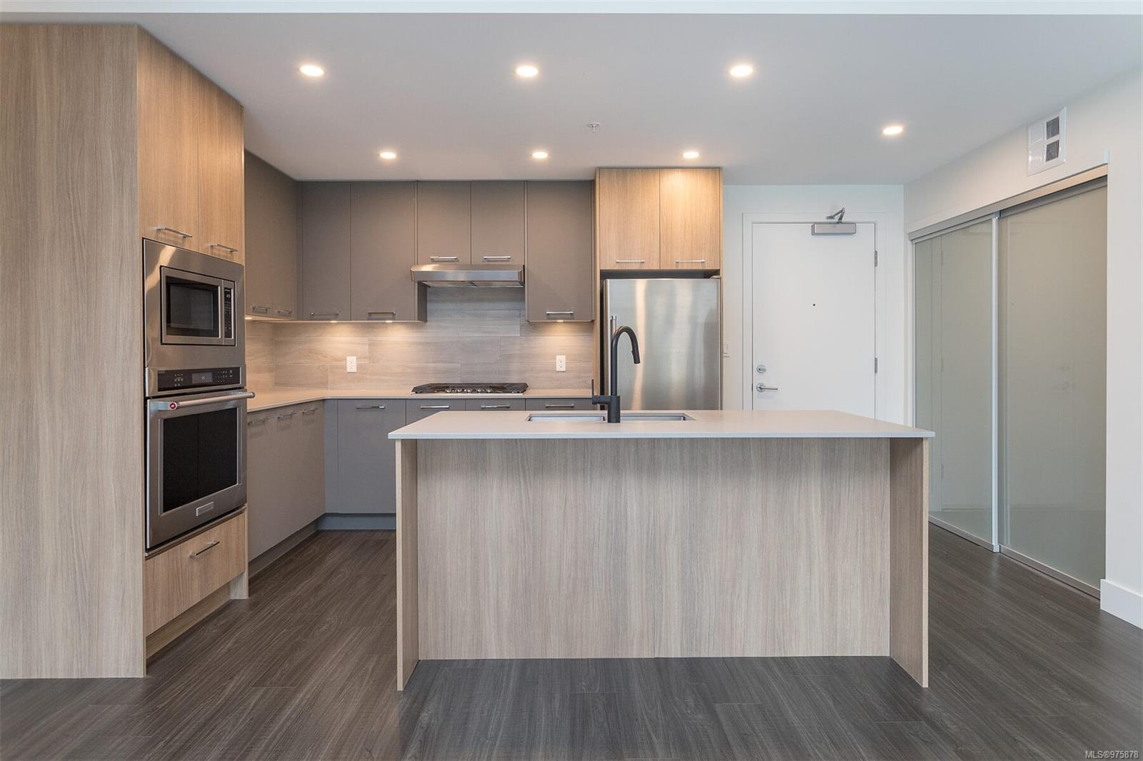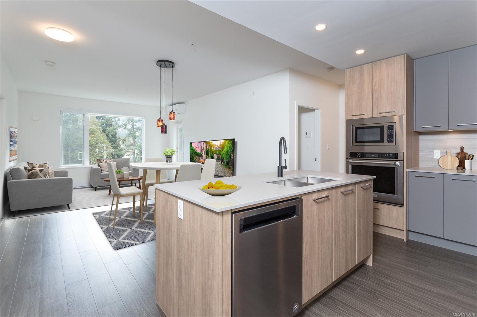 This MUST SEE condo hosts an array of upscale features setting it apart from the rest! Offering a sunny SE exposure & complete privacy with it’s treed outlook over the galloping goose trail this unit offers over $25,000 in owner improvements & will cater to & delight the most discerning buyers.With 2 separated bedrooms & 2 full baths this unit offers an open concept entertainment style center hall plan ideal for entertaining.The adjacent office space is fully outfitted with built in desk/storage solutions, 1000 book library shelving + an adjacent storage room providing even more space. This unit presents as brand new having been lightly lived in by its original owners & comes with sep storage, large private lanai (with phantom screen) & underground parking. The many features of this accessible building include EV chargers, lounge, bicycle storage with maintenance station,kayak room, an electric scooter room,dog wash,etc The list of upgrades to this unit is too long to list (see attached features list) but some of the many features include two luxurious TOTO toilets (washlet, heated seat, etc) well equipped closet organizers, built ins throughout including a full wall of shelving in the laundry,high end appliances etc. The master walk-in closet provides ample storage options,while the kitchen boasts smart drawers in the added pantry, upgraded exhaust fan, natural gas stove top, quartz counters & so many cupboards! The communal lounge and outdoor lounging/picnic area with a gas BBQ and fire pit offer opportunities for socializing and relaxation.The exclusive Belmont Club adds a touch of luxury to everyday living with art & music rooms, ample bathroom facilities, lounge & kitchen facilities etc available for your use 365 days a year. In addition to these premium upgrades, the property’s location cannot be beat. Park your car & walk to every amenity! From ethnic restaurants to pharmacies, doctors’ offices, and retail stores, gym, everything you need is within reach.